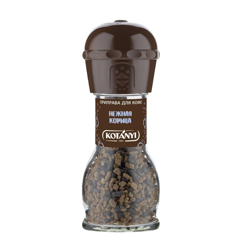 Приправа для кофе Kotanyi Нежная корица 70 г. Состав: сахар в гранулах (сахар, обезжиренный какао-порошок, глюкозный сироп, какао тертое, растительные масла (какао, рапсовое), декстроза, эмульгатор: лецитин, загуститель: гуммиарабик, ароматизатор, карамельный сироп, антислеживающий агент: тальк), гранулированный сахар (сахар, корица, глюкозный сироп, карамельный сироп, подсолнечное масло, натуральный ароматизатор "корица"). Пищевая ценность в 100 г: жиры - 2,3 г; белки - 1,1 г; углеводы - 93 г. Энергетическая ценность: 1685 кДж, 397 ккал. Срок годности: 36 месяцев. Страна производства: Австрия.