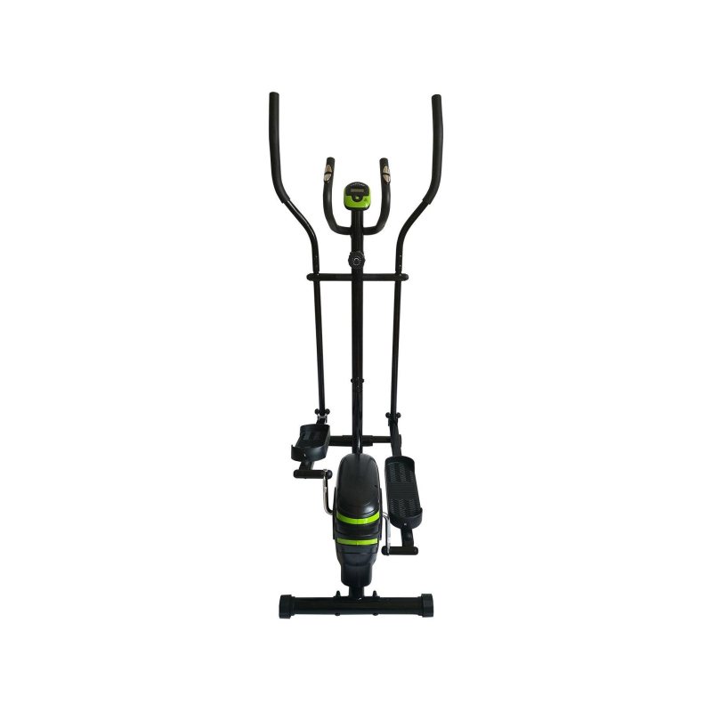 Тренажер Эллиптический DFC магнитный E508H. Компактный эллиптический тренажер для домашнего использования с магнитной системой нагружения. Тренажер имеет магнитную систему нагружения, с механической регулировкой в 8 положениях с помощью удобной ручки на стойке тренажера. Характеристики: - На руле расположены 2 датчика пульса с отображением показаний на дисплее консоли. - Питание консоли от батареек. - Вы можете разместить тренажер в любом удобном месте. - Встроенные в передней части колеса позволят переместить тренажер по комнате после тренировки. - Модель не требует специальных знаний для самостоятельной сборки.