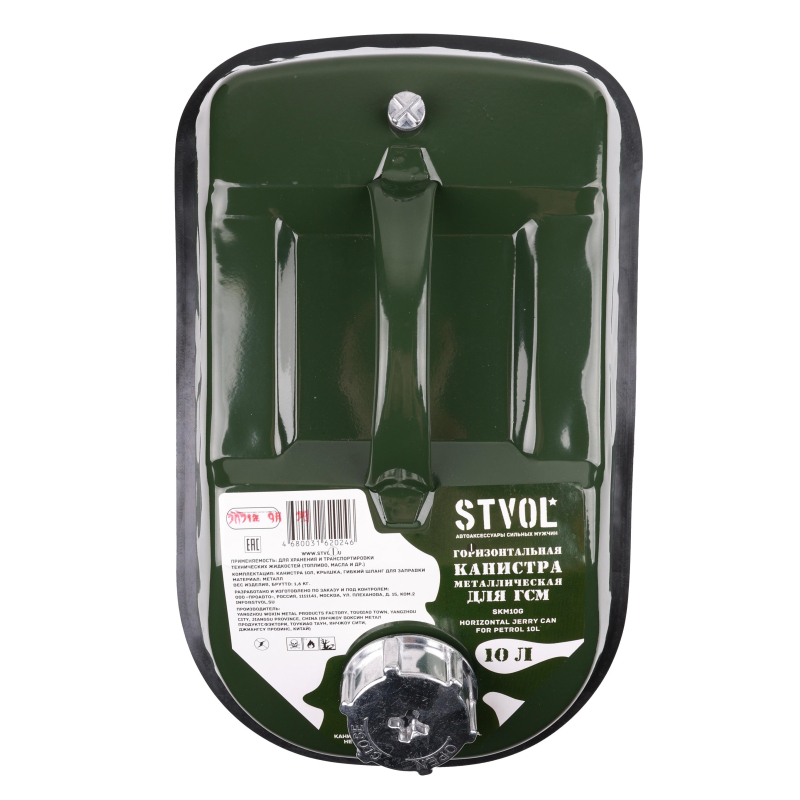 Канистра для ГСМ Stvol SKM10G металлическая 10 л Предназначена для транспортировки и хранения технических/горючих жидкостей. Горизонтальная канистра имеет устойчивую форму, полностью исключая опрокидывание. Комплектуется металлической крышкой с резьбой и специальным пластиковым носиком, облегчающим процесс заправки автомобиля. Внешний вид и/или характеристики товара могут быть изменены производителем в соответствии с производственным процессом.