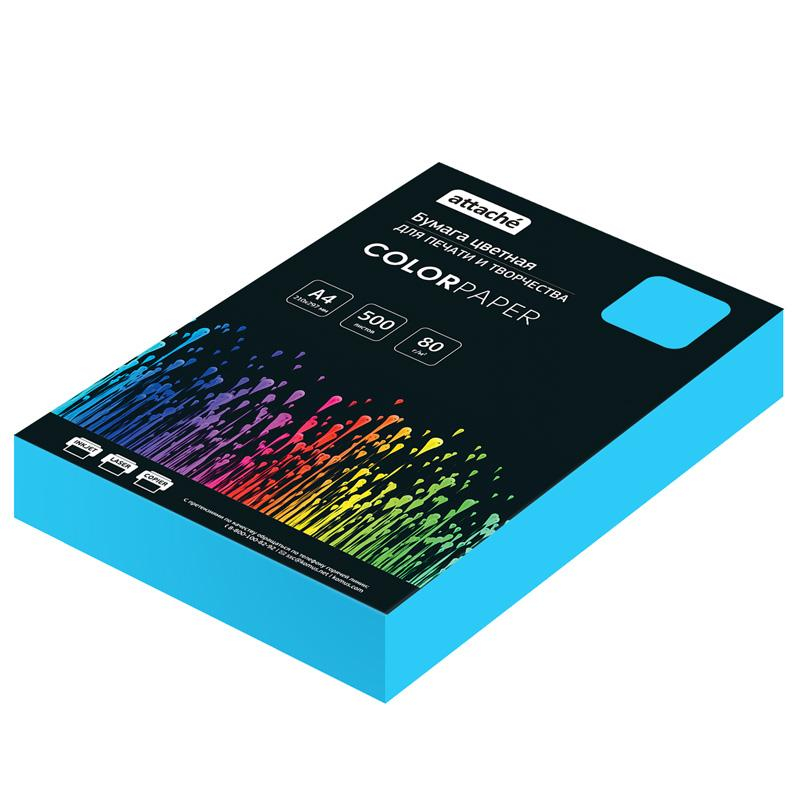 Бумага цветная Attache (синий интенсив), 80г, А4, 500 л