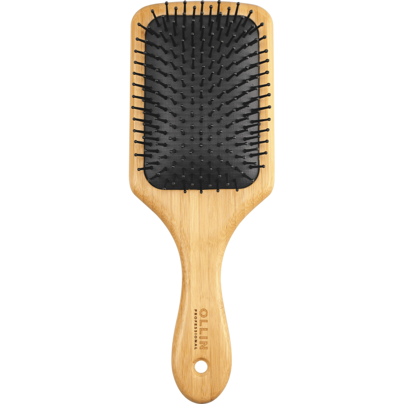 Массажная щетка Ollin Professional Bamboo 730673. Профессиональный инструмент для укладки волос. Щетинки из нейлона устойчивы к воздействию высоких температур, не деформируются со временем. Материал основания - дерево.Форма: прямоугольная.Количество рядов: 13.Размер (ШхД): 89х288 мм.