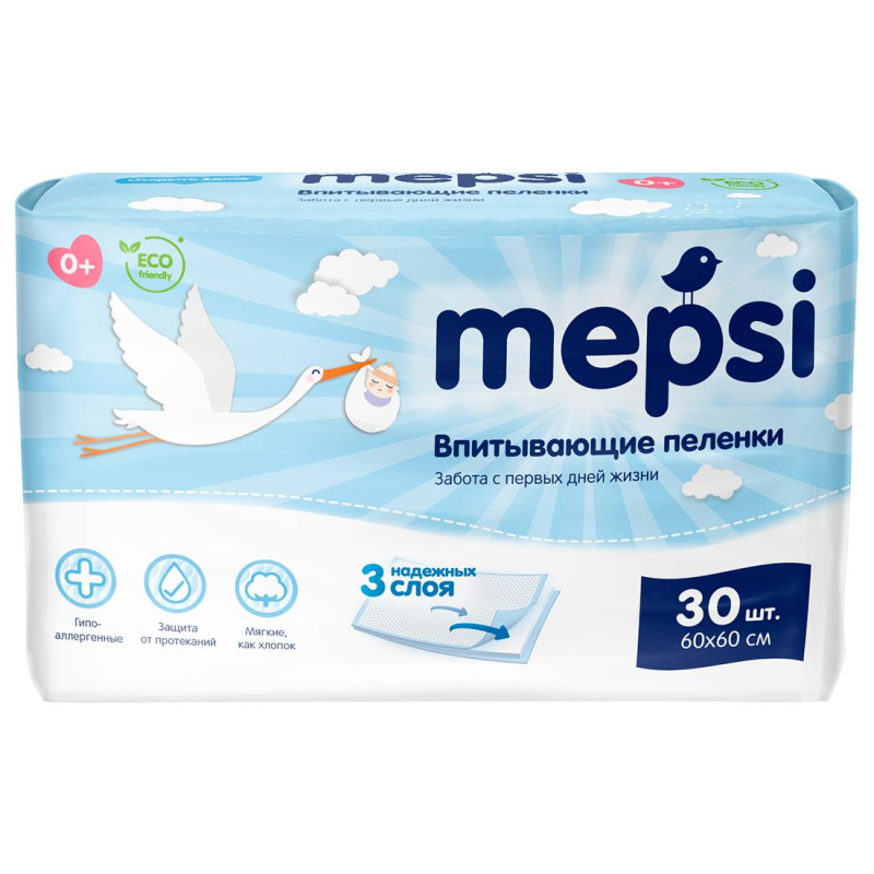 Одноразовые пеленки Mepsi обеспечивают комфорт мамы и малыша при пеленании, кормлении, а также когда ребенок находится без подгузников. Пеленки Mepsi берегут ваши кроватки, коляски и другие поверхности.Одноразовые пеленки Mepsi изготовлены из гипоаллергенных, мягких и безопасных для малышей материалов, способны быстро поглощать жидкость и удерживают ее, благодаря впитывающему слою.Состав: нетканый гипоаллергенный материал, 100% распушенная целлюлоза, полиэтилен.Страна производства: Россия.