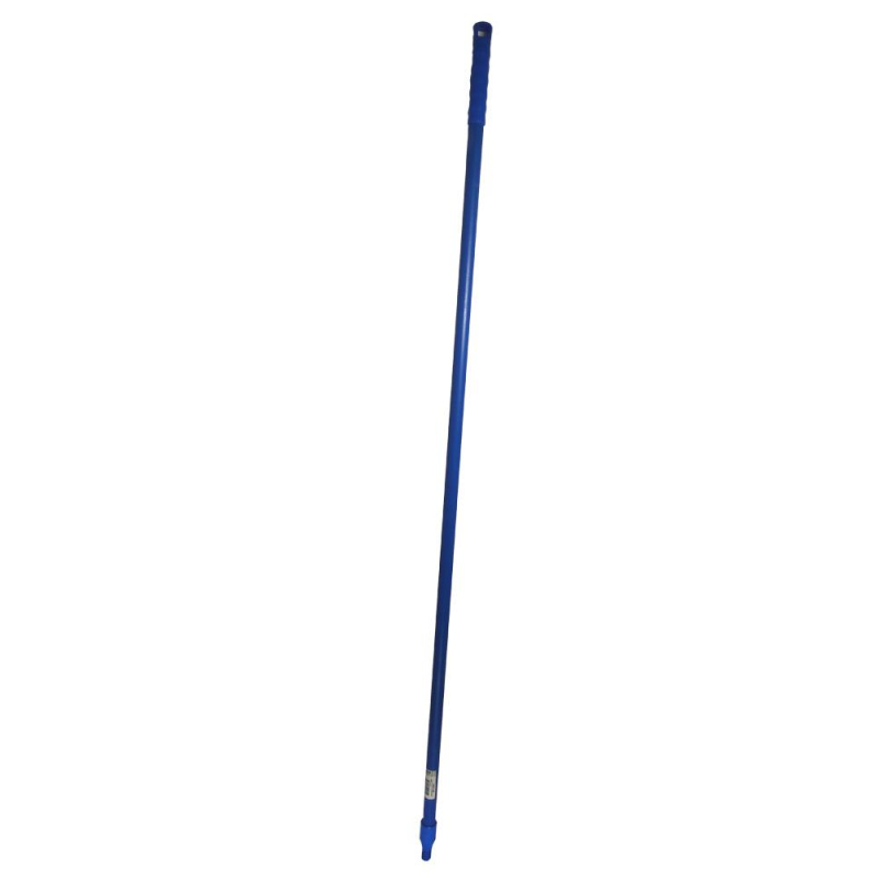 Рукоятка Haccper 150 см стекловолокно синяя. Подходит для областей, где требуется высокая гигиена. Очень легкая, не проводит электричество, не содержит бактерии и устойчива к воздействию окружающей среды. Нейлоновый пластиковый наконечник с резьбой, максимально устойчив к износу. Тип крепления: американская резьба. Диаметр рукоятки: 25 мм. Диаметр резьбы: 16 мм. Длина ручки: 150 см. Вес: 680 гр.