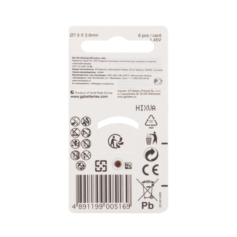 Батарейка PR41 GP Hearing Aid для слуховых аппаратов (6 штук в упаковке) Внешний вид и/или характеристики товара могут быть изменены производителем в соответствии с производственным процессом.
