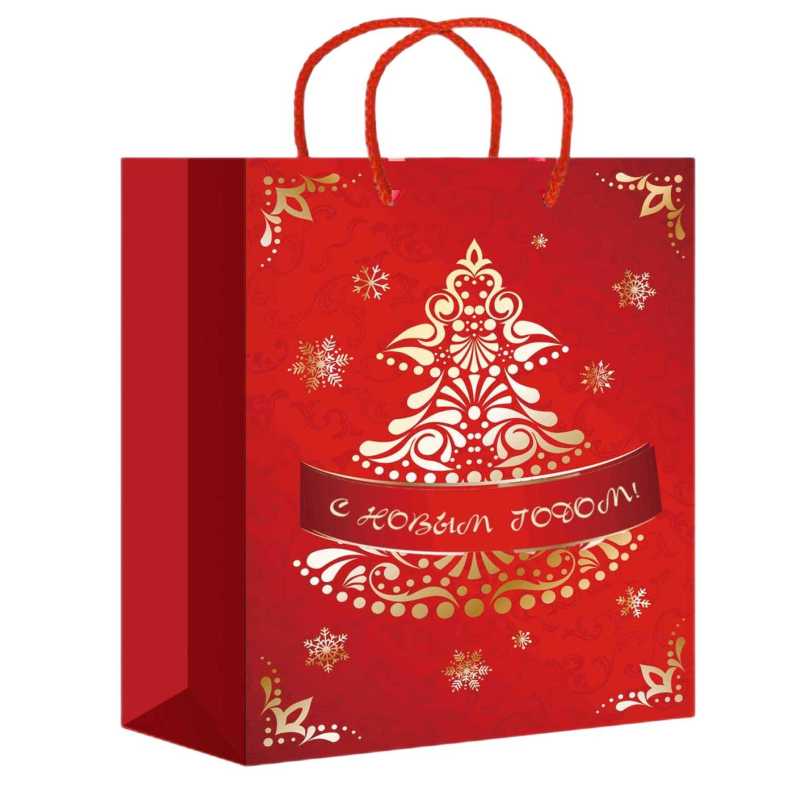 Пакет подарочный ламинированный новогодний. Данный пакет с тиснением фольгой и блестками придаст привлекательный внешний вид Вашему подарку. Кроме того, стильная безупречно выполненная упаковка часто говорит о качестве продукции, находящейся внутри. - Материал: бумага. - Тип ручек: шнурок. - Размер изделия: 44.5x32.4x10.2 см.