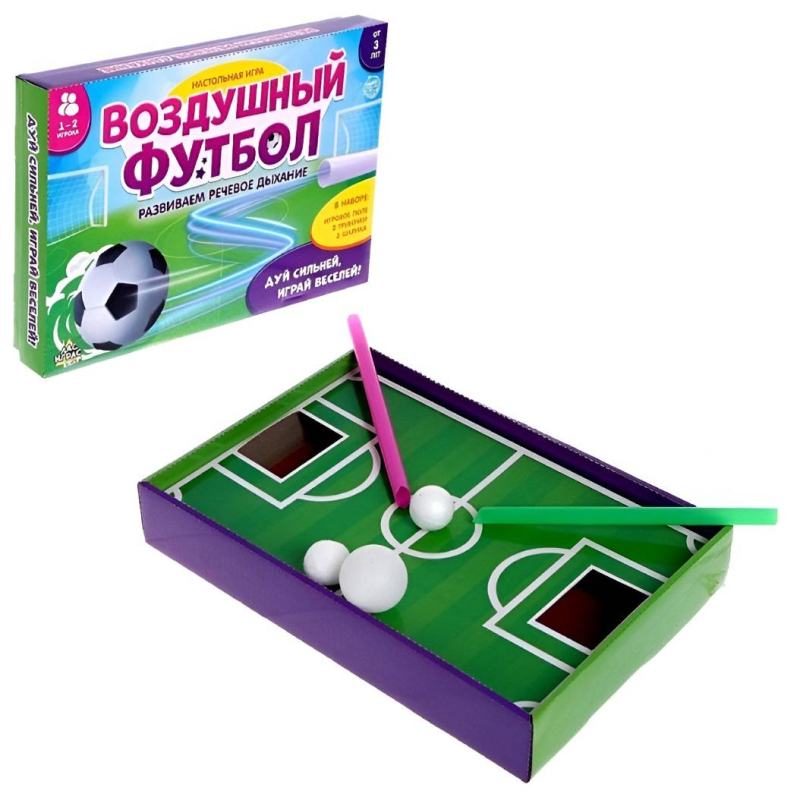 Игровой стол Воздушный футбол. Настольный 'Воздушный футбол' - интересная и полезная логопедическая игра! Развивает речевое дыхание, формирует сильный и плавный ротовой выдох. Эти упражнения помогут ребенку исправить недостатки речи и научиться управлять артикуляционным аппаратом. Цель игры: Загнать больше шариков в ворота соперника. Описание игры: Установите шарик в центр поля, возьмите трубочки и по команде одновременно дуйте на него. Усложняйте игру, попросите кроху забивать не напрямую, а с помощью удара о боковую стенку. Для одного игрока задание - дуть на шарик в правый и левый угол, как будто передавая мяч сопернику. Расскажите малышу, как правильно выполнять ротовой выдох: сделайте спокойный вдох; выдыхайте воздух правильно, без толчков; при выдохе складывайте губы трубочкой (не надувайте щеки и не сжимайте губы); во время выхода воздух должен выходить через рот, не через нос. Игра рекомендована детям старше 3 лет и рассчитана на 1-2 участников. Дуйте сильней - играйте веселей!