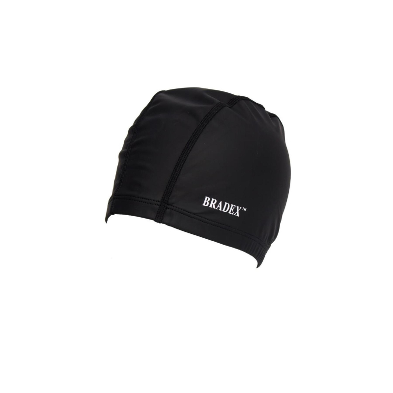 Шапочка для плавания текстильная черная. Вы любите ходить в бассейн, но вам не нравятся шапочки из резины и силикона? Эта удобная плавательная шапочка с надежным покрытием из полиуретана хорошо защищает волосы от намокания и комфортно облегает голову. Модель выполнена из мягкой качественной ткани: шапочка для бассейна легко надевается и не перетягивает волосы и кожу головы. Преимущества: Удобно надевать. Комфортно облегает голову. Эластичный и качественный материал. Волосы остаются сухими.