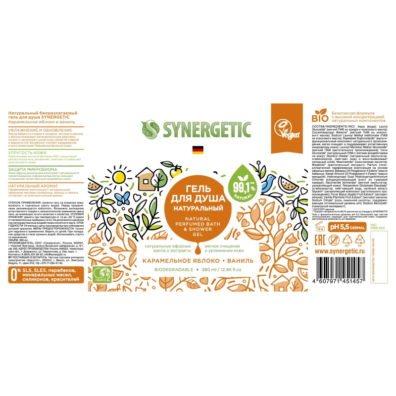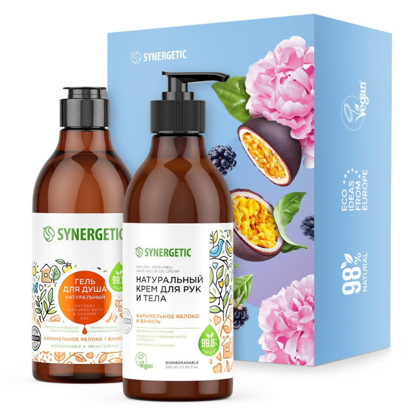 Подарочный набор женский Synergetic Карамельное яблоко и ваниль. Любите сладкое? Тогда превратите ежедневную процедуру заботы о себе в приятный ритуал, который окутает вас густым теплым ароматом ванили, яблока и карамели! В наборе вы найдете натуральные средства для заботы о вашей коже. Уходовая косметика Synergetic создается на основе растительных компонентов, не содержит компонентов животного происхождения и не тестируется на животных. В состав набора входят: Гель для душа Synergetic "Карамельное яблоко и ваниль" 380 мл. В состав геля входят масла сладкого миндаля, экстракты ванили и яблока, которые оказывают регенерирующее действие, питают и увлажняют сухую кожу, делая ее гладкой и бархатистой. Крем для рук и тела Synergetic Карамельное яблоко и ваниль 380 мл. Натуральный крем для рук и тела подарит коже удивительную мягкость, увлажнение и ощущение комфорта и, конечно, приятный сладкий аромат. Он наполнит вас ощущением тепла и нежности на весь день! Активные компоненты крема восстанавливают естественный водный баланс и улучшают внешний вид кожи, препятствуя потере влаги. Способ применения. Нанести массирующими движениями на кожу тела. Меры предосторожности: При попадании в глаза, промыть водой. Только для наружного применения. Оберегать от детей и животных. Хранить отдельно от еды. Хранить при температуре от +5 до +25°С вдали от нагревательных приборов и огня. Не допускается хранение под непосредственным воздействием солнечного света. Срок годности: 36 месяцев с даты производства при соблюдении условий хранения.