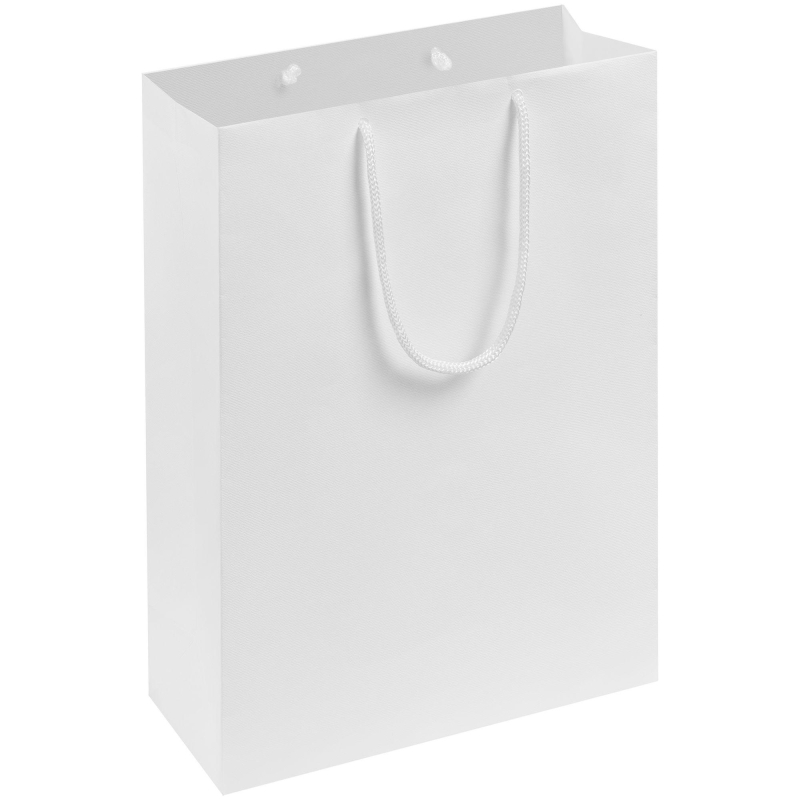Пакет подарочный однотонный изготовлен из бумаги плотностью 150 г/кв.м. Для удобной переноски на пакете имеются две ручки из шнурков. Выдерживает вес до 2 кг. Цвет изделия: белый. Размер изделия: 35x23x10 см.
