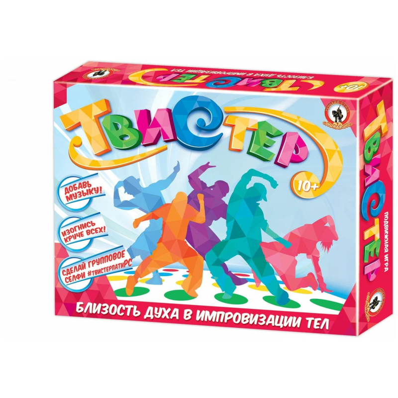 Твистер - это подвижная напольная игра, которая подойдет не только для двух игроков, но и для большой компании. Играть в нее очень весело. В процессе игры нужно просто выполнять задания ведущего и не падать на игровом поле. Ведущий крутит стрелку по очереди для каждого игрока. Стрелка указывает какую руку или ногу игрок должен переставить и на какой цветовой круг. Помимо этого, на рулетке в каждом секторе есть два дополнительных задания. Если стрелка указала на сектор Птичка - игроку необходимо поднять указанную руку или ногу, а если стрелка попала на сектор Восклицательный знак , то ведущий придумывает дополнительное задание по своему усмотрению: прочитать стихотворение, похвалить другого игрока, рассказать шутку и т.д. Тот, кто не смог удержать равновесие в процессе игры - выбывает. Выигрывает тот, кто оказался самым устойчивым и не упал на игровом поле. Чем больше участников, тем игра становится азартнее и веселее. Все, что понадобится для игры - это немного места для напольного коврика и 20-30 минут на партию. Количество игроков для игры в Твистер: от 2 до 4. В комплект входит игровое поле размером 120х180 см, рулетка с заданиями. Игра подходит для детей от 10 лет.