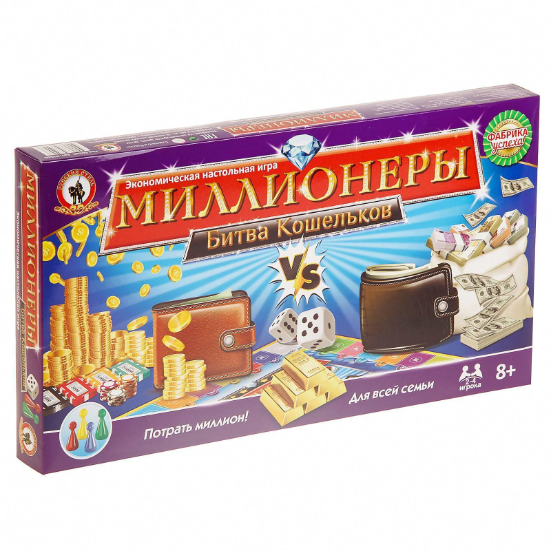Деньги должны работать! Узнай, каково это быть владельцем огромного состояния. Покупай и продавай активы, делай выгодные инвестиции в разные отрасли экономики и приумножь свой стартовый капитал, возглавив список Миллиардеров. Игра рассчитана на 2 - 4 игроков и предназначена для детей и их родителей в возрасте от 10 лет.