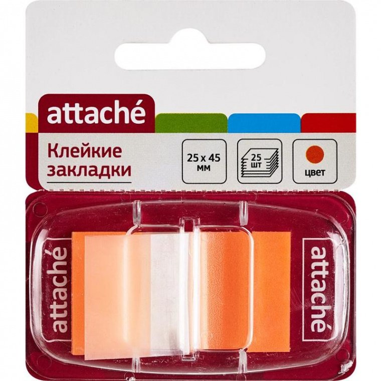 Клейкие закладки Attache пластиковые оранжевые 25 листов 25х45 мм в диспенсере