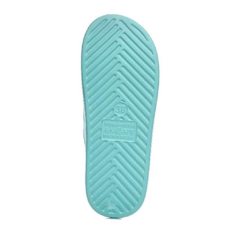 Тапочки (сланцы) женские модели Немо. Выполнены в голубом (мятном) цвете. Размер 38. Материал верха и подошвы - ЭВА. Профилированная и гибкая подошва создает удобство при ходьбе, позволяет не чувствовать неровности дороги и мелкие камешки. Углубленная рифленая стелька придает амортизирующий эффект. За счет продуманного дизайна модель обеспечивает комфортную фиксацию на ноге. Хлястики расположены так, чтобы не давить на пучковые узлы, это помогает избежать натирания и способствует эргономичной носке. Метод крепления подошвы. Предназначены для защиты от скольжения. Соответствуют стандартам ТР ТС 017/2011. Цвет на изображении товара в интернет-магазине или в печатном каталоге может отличаться от оригинала из-за особенностей цветопередачи монитора.