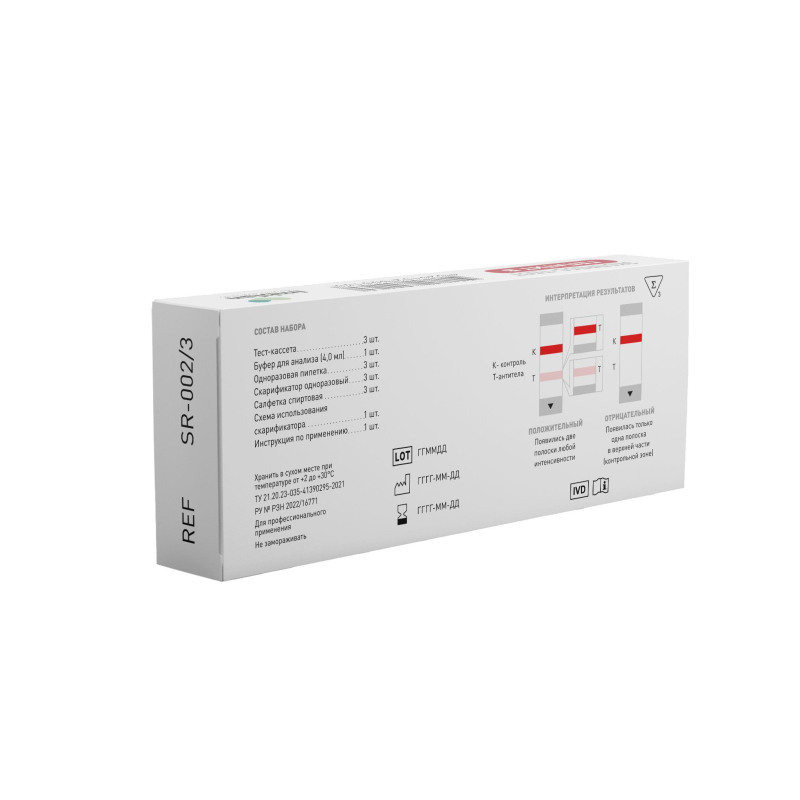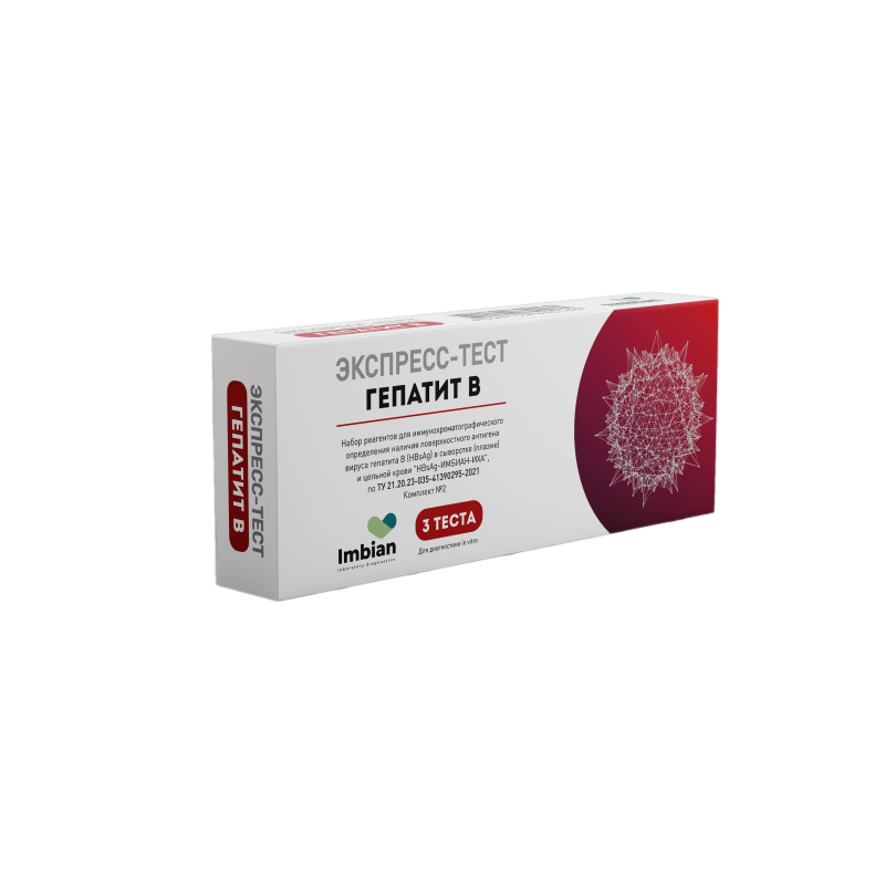 Набор реагентов для иммунохроматографического определения наличия поверхностного антигена вируса гепатита В (HBsAg) в сыворотке (плазме) и цельной крови "HBsAg-ИМБИАН-ИХА", по ТУ 21.20.23-035-41390295-2021. Срок годности 24 месяца. Комплектация: пачка карт., тест-кассета 3 шт., буфер для анализа (4 мл) 1 шт., пипетка 3 шт., скарификатор 3 шт.