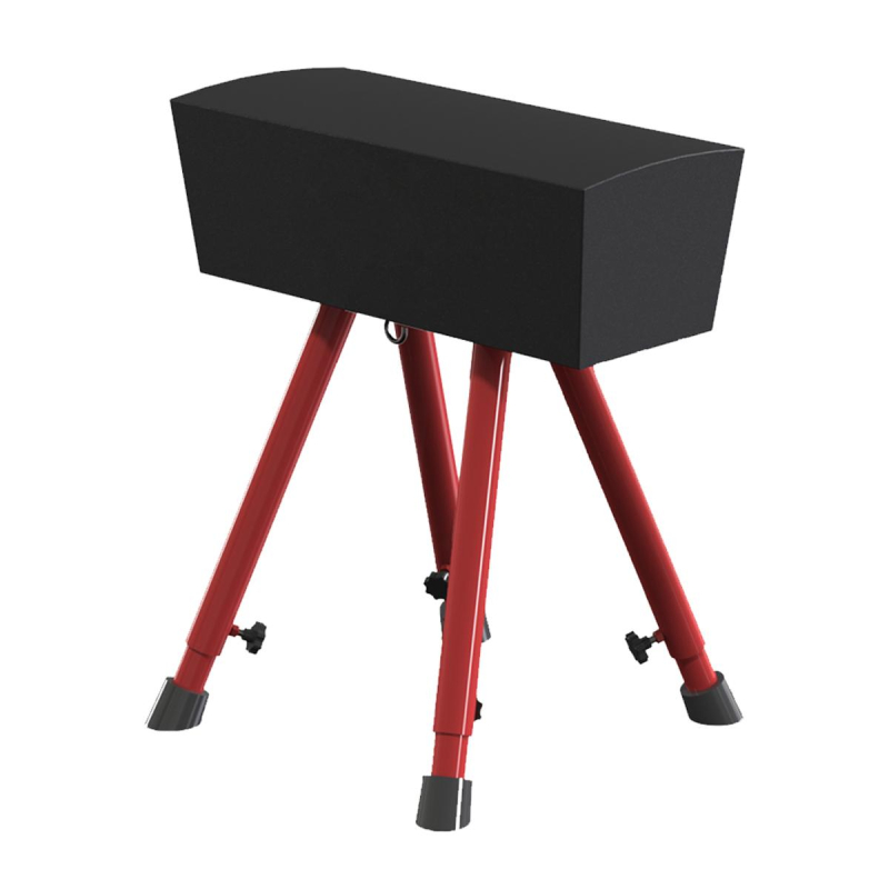 Козел гимнастический предназначен для гимнастических упражнений в закрытых спортзалах. Технические характеристики: Конструкция козла представляет собой сборно-разборную конструкцию, состоящую из корпуса и опор. Корпус выполнен из дерева, обклеенный изолоном и покрыт чехлом из искусственной кожи. Размер корпуса, ДхШхВ, мм: 670х350х280. Все края и углы корпуса имеют закругленную форму. На корпусе имеются резьбовые шпильки для закрепления опоры. Опора телескопическая и выполнена из стальных труб диаметром 57 и 48 мм (стенка 2 мм), окрашенных порошковой эмалью. На каждой телескопической стойке опоры установлен резиновый наконечник-копыто. Регулировки козла по высоте осуществляется выдвижением нижней трубы телескопической стойки опоры с шагом 50 мм. Высота верхней поверхности корпуса от пола регулируется: 916 - 1330 мм (9 уровней регулировки). В целях техники безопасности, в нижней части корпуса имеется зацеп для фиксации козла к полу.