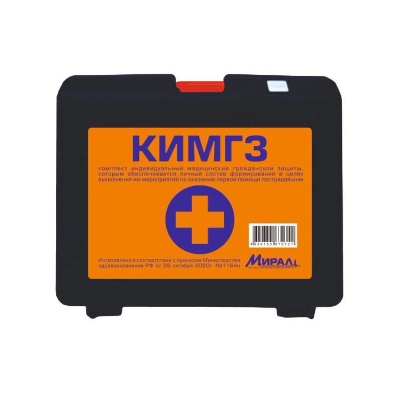 Комплект медицинский гражданской защиты, которым обеспечивается личный состав формирований в целях выполнения им мероприятий по оказанию первой помощи пострадавшим. Приказ Министерства здравоохранения РФ № 1164н от 28.10.2020 г. Комплектация: 1. Маска медицинская нестерильная одноразовая - 2 шт. 2. Перчатки медицинские нестерильные, размером не менее М - 2 пары. 3. Устройство для проведения искусственного дыхания "Рот-Устройство-Рот" - 1 шт. 4. Жгут кровоостанавливающий для остановки артериального кровотечения - 1 шт. 5. Бинт марлевый медицинский 7 м x 14 см - 2 шт. 6. Салфетки марлевые медицинские стерильные размером не менее 16x14 см № 10 - 1 уп. 7. Лейкопластырь фиксирующий рулонный размером не менее 2x500 см - 1 шт. 8. Покрывало спасательное изотермическое - 1 шт. 9. Ножницы для разрезания повязок - 1 шт. 10. Инструкция - 1 шт.