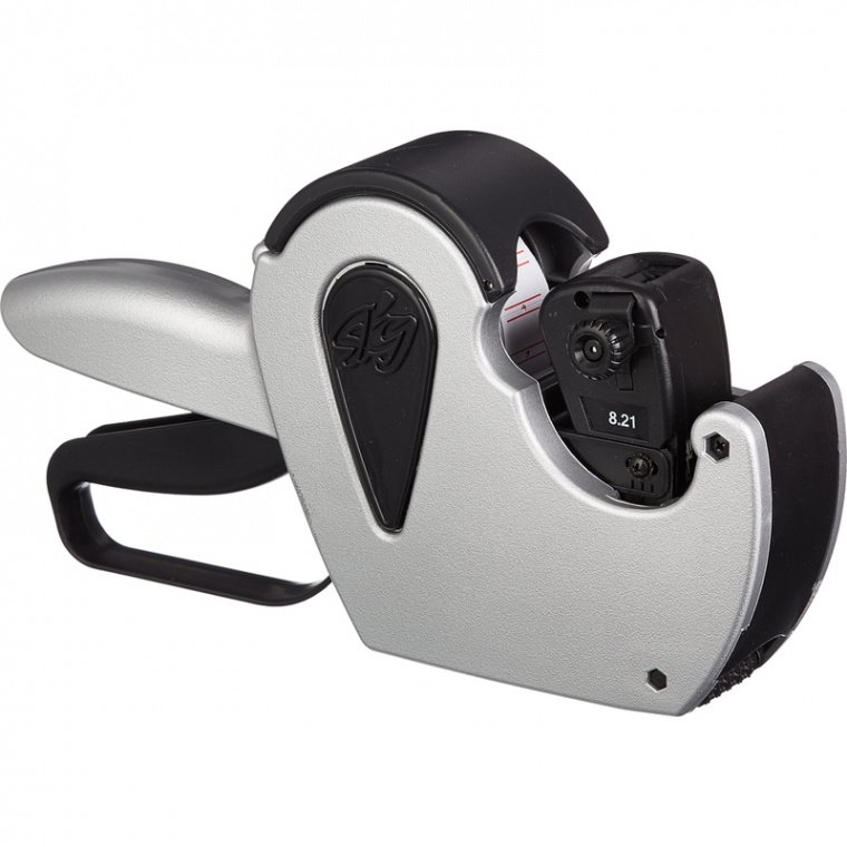«Этикет-пистолет Sky 821 имеет неограниченный срок хранения. Печатает на прямоугольных этикетках размером 21 на 12 мм. Используется в розничной торговле для маркировки товара. Печатает информацию в одну строку по 8 символов, среди которых могут быть точка, цифры и значки различных валют (нет знака слеш).