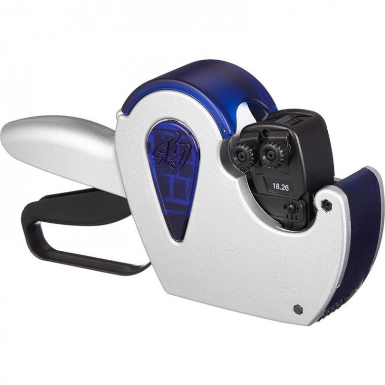 «Этикет-пистолет Sky С18 производит печать на прямоугольных этикетках размером 26×16 мм. Печатает в две строки, по 9 символов в каждой. Используются цифры, знаки препинания и знаки различных валют. Размер шрифта в верхней строке составляет 2 на 3 мм, а в нижней строке: 2 на 5 мм. Материал этикет-пистолета — пластик. Вес — 0,5 кг.