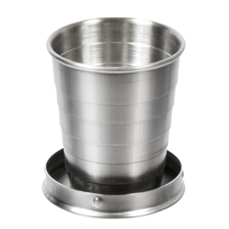 Стакан нержавеющая сталь складной Boyscout 140 мл. Индивидуальный портативный стаканчик незаменим в походе, в дороге, на даче и пикнике. С помощью карабина пристегивается к ремню или рюкзаку. Размер: диаметр - 6,5 см, высота - 3 см (в сложенном состоянии), высота - 7,5 см (в разложенном состоянии). Комплектность: стакан 140 мл, чехол.
