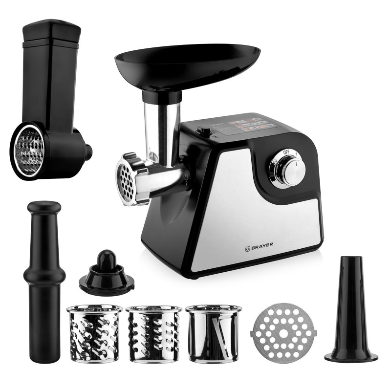 Мясорубка BRAYER 1607BR, 1350 Вт, 2 диска, кеббе, колб, 4 нсад. для овощ