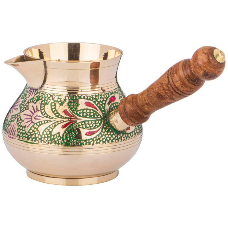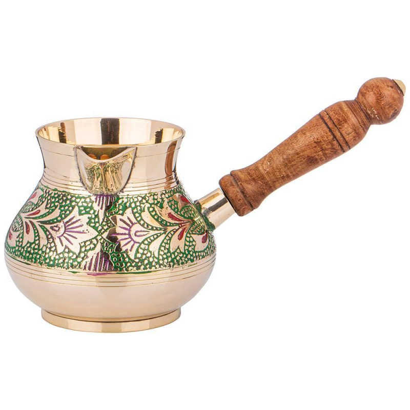 Турка Lefard 400 мл не только подходит для ежедневного использования, но и является элементом декора интерьера. Основные преимущества: - Эксклюзивность (каждое изделие по своему уникально благодаря ручной работе - минимум машинной обработки, роспись и чеканка делается вручную). - Съемная деревянная ручка (удобно мыть и хранить). - Можно использовать на газовой, электрической и стеклокерамической плите. - Экологически чистый материал (в процессе приготовления в пищу не выделяются вредные вещества). - Неприхотливы в уходе (легко чистится подручными средства, только следует избегать абразивных и кислотосодержащих моющих средств). - Долговечны, так как латунь не подвержена коррозии. Рекомендации по уходу: Турки для кофе, которые новые, перед использованием нужно ополоснуть кипятком, а первый приготовленный в ней кофе лучше слить. После этой недолгой процедуры можно приступать к ритуалу под названием "приготовление кофе в турке". Не использовать жестких абразивов и агрессивных химических реактивов. Мыть теплой водой с разведенной в ней мягкой посудомоечной жидкостью. Затем ополоснуть чистой водой и вытереть насухо. Для придания блеска можно аккуратно полировать очень мягкой тряпочкой или замшей.