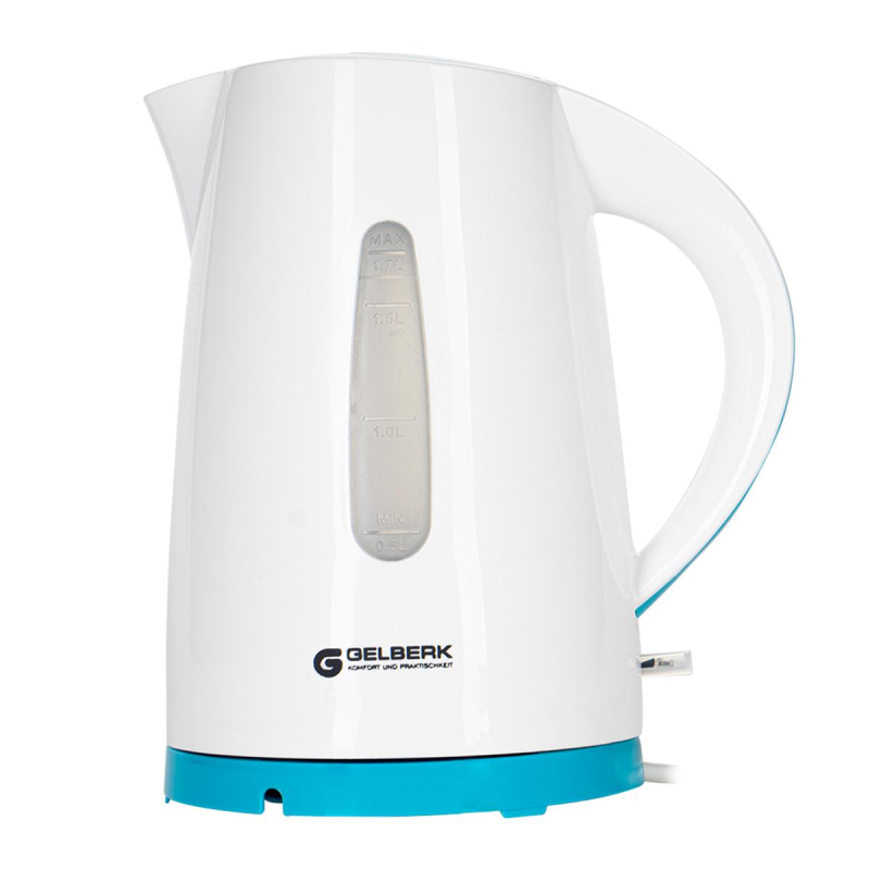 Чайник GELBERK GL-461, белый/бирюза 1,7л., пластик