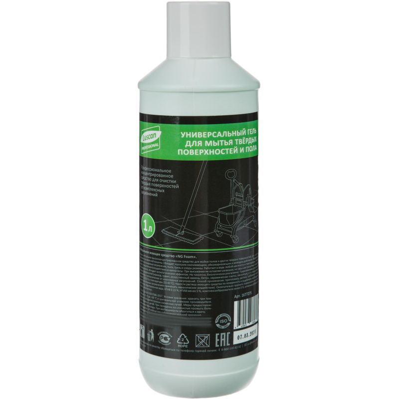 Универсальное моющее средство Luscan Professional UNI Foam Cleaner 1 л (концентрат) Область применения: Средство предназначено для регулярной мойки и очистки водостойких поверхностей из натурального и искусственного камня, пластмассы, окрашенных, лакированных, стеклянных, металлических поверхностей и полов с полимерным или ламинированным покрытием, линолеума, паркета, керамической плитки, линолеума, ПВХ, резины. Рекомендуется для применения в санаторно-курортных учреждениях, на предприятиях сферы гостеприимства и других сфер обслуживания населения, а также на объектах общественного питания, детских дошкольных и школьных учреждениях, помещения торговых и деловых центров. Свойства: Нейтральное концентрированное низкопенное средство. Используется для очистки различных водостойких поверхностей, в том числе деликатных: мраморных, деревянных, окрашенных. Может применяться для мытья всех видов напольных и настенных поверхностей, обивки мебели. При высыхании не оставляет разводов и пятен. Ароматизирует поверхность и уменьшает дальнейшее накопление загрязнений. Не оказывает отрицательного воздействия на обрабатываемые поверхности. Обладает антистатическим эффектом. Способ применения: Используется в виде водного раствора в концентрации от 0,2% до 4% (3-40 мл средства на 1 л воды). Оптимальные рабочие концентрации определяют по виду и степени загрязнений, жесткости и температуре воды, типу поверхности. Рабочие растворы наносят методами орошения, протирания. Очистка поверхностей и пола (ручная): Рабочий раствор 0,2%-1% концентрации (2-10 мл средства на 1 л воды). Нанеcти раствор ручным способом на загрязненную поверхность, протереть, не требует смывания. Ежедневная ручная уборка (МОП-система): 0,25%-4% раствор (2,5-40 мл средства на 1л воды). Температурный режим разведения и применения от 20°C до 55°C. Состав: вода умягченная ?30%, НПАВ менее 5%, МГДА, комплексообразователи менее 5 %, метилхлороизотиазолинон, метилизотиазолинон, ингибиторы коррозии,отдушка, краситель. Плотность: 1.02 г/см? Значение pH 1%-раствора: 8 (+0,5) Меры предосторожности: Беречь от детей! Использовать средства индивидуальной защиты. При попадании в глаза промыть большим количеством проточной воды. При необходимости обратиться к врачу. Условия хранения: Хранить в заводской упаковке, плотно закрытым, при температуре от +5°С до +30°С, вдали от источников тепла, избегая попадания прямых солнечных лучей, отдельно от пищевых продуктов, в местах недоступных для детей и животных. Срок годности: 2 года с момента производства (при соблюдении условий хранения, рекомендованных производителем). Объем: 1000 мл.