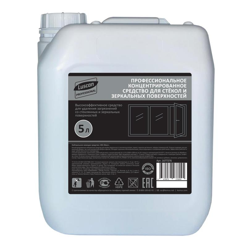 Средство для мытья стекол и зеркал Luscan Professional Glass Crystal 5 л (концентрат) Область применения: Средство предназначено для очистки стеклянных, зеркальных, кафельных, хромированных поверхностей и поверхностей из нержавеющей стали на предприятиях общественного питания, объектах сферы обслуживания и в быту населением, а также в детских школьных и дошкольных учреждениях. Применимо для очистки экранов оргтехники, корпусной мебели, изделий из хрусталя, керамики и фарфора. Свойства: Жидкий нейтральный низкопенный концентрат с антистатическими свойствами. Применим для устранения улично-бытовых и органических загрязнений - пыли, грязи, жировых пятен, следов от пальцев. Не содержит аммиак, не оставляет разводов и придает блеск поверхности. Обладает хорошим обезжиривающим и эмульгирующим действием. Эффективно работает в воде любой жесткости и температуры. Замерзает при -5°С, после размораживания (не более 3 циклов!) свойства сохраняются. Способ применения: Используется в виде водного раствора. Оптимальные рабочие концентрации определяют по виду и степени загрязнений, жесткости и температуре воды, типу поверхности. Не допускать высыхания раствора на поверхности! Ежедневная уборка: Использовать рабочий раствор средства в концентрации 1%-3% (10-30 мл средства на 1 л воды). Рекомендуемая температура воды 10°С-30°С. Наносить раствор на загрязненную поверхность методом протирания или распыления, при необходимости отполировать. Генеральная уборка: Использовать рабочий раствор средства в концентрации 5%-12% (50-120 мл средства на 1 л воды). Рекомендуемая температура воды 20°С-50°С. Наносить раствор на загрязненную поверхность с помощью спрей-системы либо АВД, выдержать 2-3 минуты, при необходимости воздействовать на поверхность механически. Стереть раствор с поверхности с помощью сгона, протирочного материала, бумаги, салфетки, отполировать. Состав: вода умягченная ?30%, изопропанол 15-30%, НПАВ 5-15%, КПАВ 5-15%, комплексоны менее 5 %, консерванты, краситель, отдушка. Плотность: 0,96 г/см? Значение pH 1%-раствора: 6,5 (+0,5) Меры предосторожности: Беречь от детей! Не использовать одновременно с другими чистящими средствами. Вызывает раздражение глаз. При попадании в глаза промыть большим количеством проточно## воды. При необходимости обратиться к врачу. Условия хранения: Хранить в заводской упаковке, плотно закрытым, при температуре от +5°С до +30 °С, вдали от источников тепла, избегая попадания прямых солнечных лучей, отдельно от пищевых продуктов, в местах недоступных для детей и животных. Срок годности: 2 года с момента производства (при соблюдении условий хранения, рекомендованных производителем). Объем: 5000 мл.