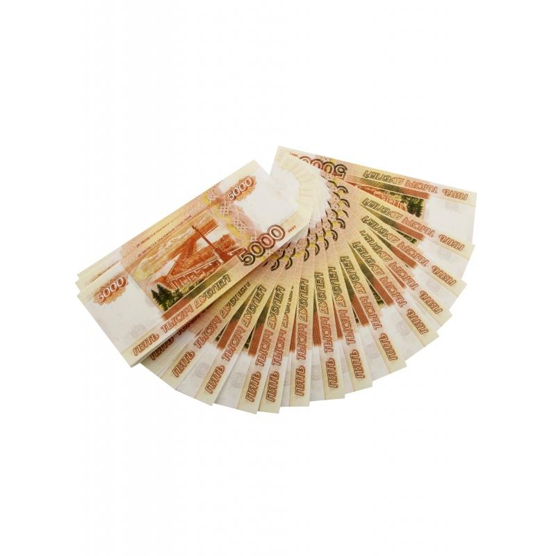 Деньги сувенирные Забавная Пачка с номиналом 5000 рублей. Количество - 1 штука. Транспортная упаковка - полиэтиленовая пленка. Подойдет для розыгрышей. Количество листов в пачке не нормировано 80-100 шт. Размер одной купюры 7x15.5 см.