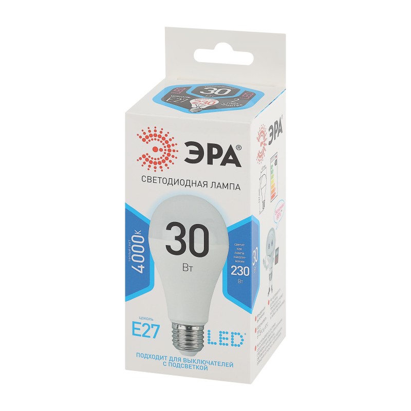 Лампа светодиодная Эра груша 30Вт E27 4000K 2400Лм 220В. Эта светодиодная лампа Эра серии Стандарт - современный, качественный и доступный источник света. Позволяет экономить до 90% электроэнергии по сравнению с лампой накаливания с аналогичным световым потоком. Светит ярким белым светом, который максимально приближен к естественному дневному. Идеальна для ежедневного применения в быту. Мгновенное включение. Ровное освещение. Можно использовать как с люстрами, так и со светильниками, в том числе настольными и бра.Внешний вид и/или характеристики товара могут быть изменены производителем в соответствии с производственным процессом.