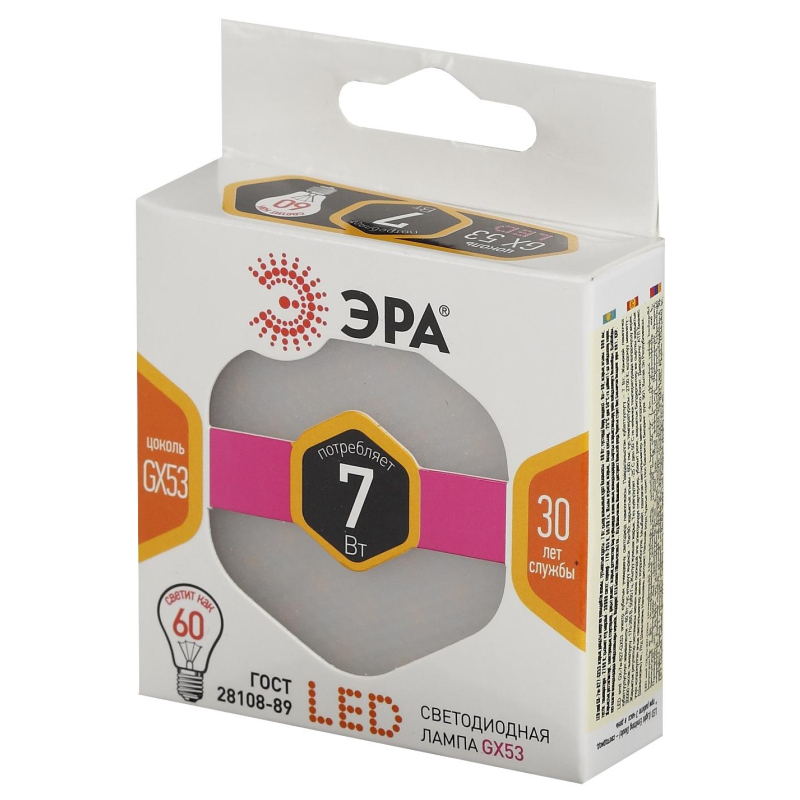 Лампа светодиодная Эра таблетка 7Вт GX53 2700K 560Лм 220В. Бытовая светодиодная лампа Эра серии Стандарт создает яркое ровное освещение и экономит до 90% электроэнергии по сравнению с лампой накаливания с аналогичным световым потоком. Светит теплым светом с желтым оттенком - такая цветовая температура эффективна для отдыха и уютной атмосферы в доме. Используется в потолочных, настенных, настольных светильниках, в люстрах и бра. Мгновенно включается и не нагревается.Внешний вид и/или характеристики товара могут быть изменены производителем в соответствии с производственным процессом.