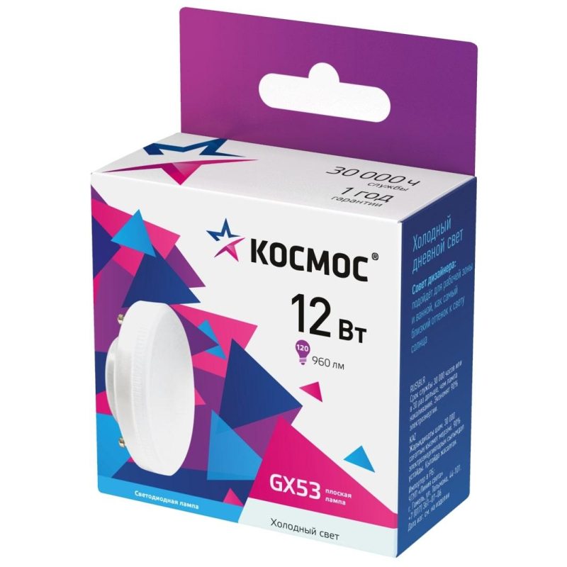 Лампа светодиодная Космос 12Вт GX53 6500K 960Лм 220В. Плоская светодиодная лампочка для потолочных светильников под натяжной потолок GX53 12 Вт - для средней комнаты понадобится 2 таких лампочки. Стабильный свет без падения яркости в течение всего срока службы (30 000 часов) - за счет использования светодиодов известных производителей. Лампа работает в диапазоне от 174В до 265В - не перегорит и не потеряет яркость при скачках напряжения в сети. Цвет свечения лампы - 6500 К дневной, максимально близкий к свету солнца и подойдет для ванной или рабочего места. Преимущества Работает в диапазоне 174В-265В - не перегорит и не потеряет яркость даже при сильных скачках напряжения в сети Мгновенное включение 'Здоровый' свет без мерцания не утомляет глаза Высокий индекс цветопередачи передает естественные цвета и оттенки Экономит до 90% энергии по сравнению с ней Экологически безопасна и не требует утилизации 2 года гарантии LED, повседневный Простая светодиодная лампа для ежедневного использования Применение Общее освещение Основное освещениеВнешний вид и/или характеристики товара могут быть изменены производителем в соответствии с производственным процессом.