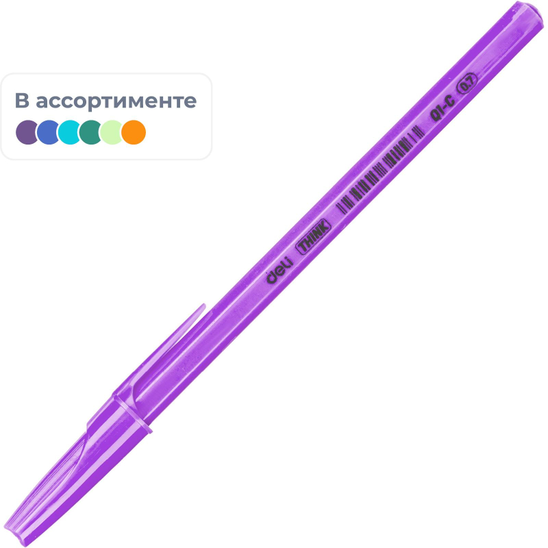 Ручка шариковая неавтоматическая Deli Think шар0,7мм,лин0,5мм син,масл,асс