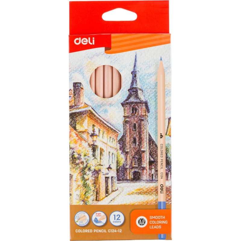 Карандаши цветные Deli 3,0 мм заточен., корп.дерев. 12цв/наб CC124-12