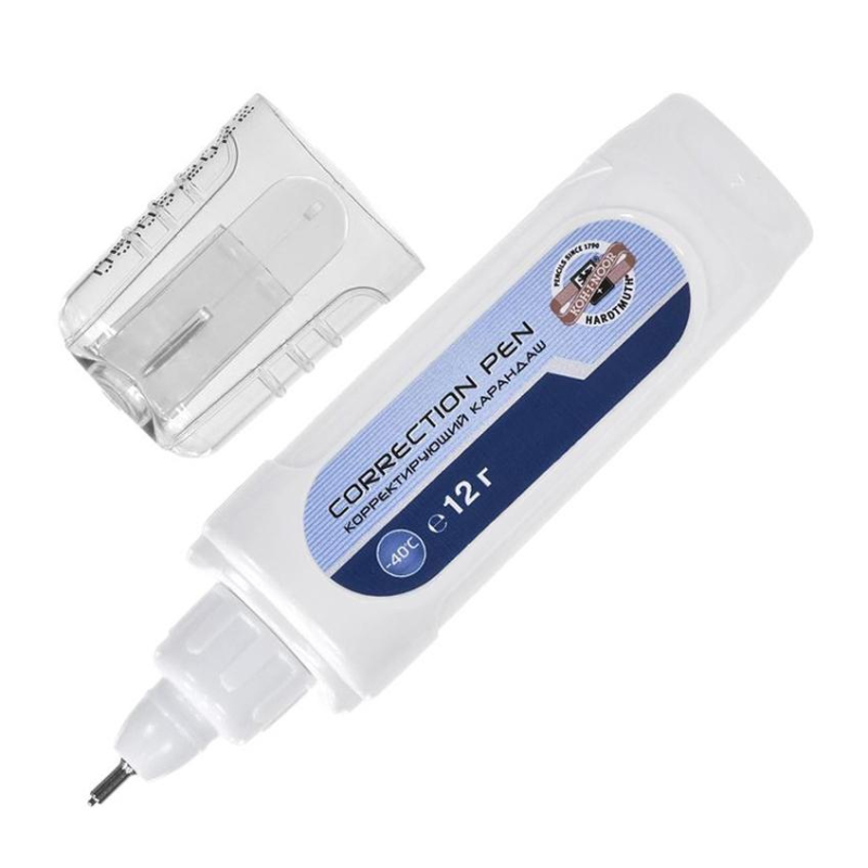 Корректор-карандаш хорошо подойдет для быстрого устранения ошибок или опечаток в документе. Карандаш морозоустойчивый. Тонкий удобный металлический наконечник. При работе не требует больших усилий. Температура при транспортировке до -40 °С. Штрих-код на каждой единице товара, на минимальной упаковке и на коробке. Объем: 12 мл.