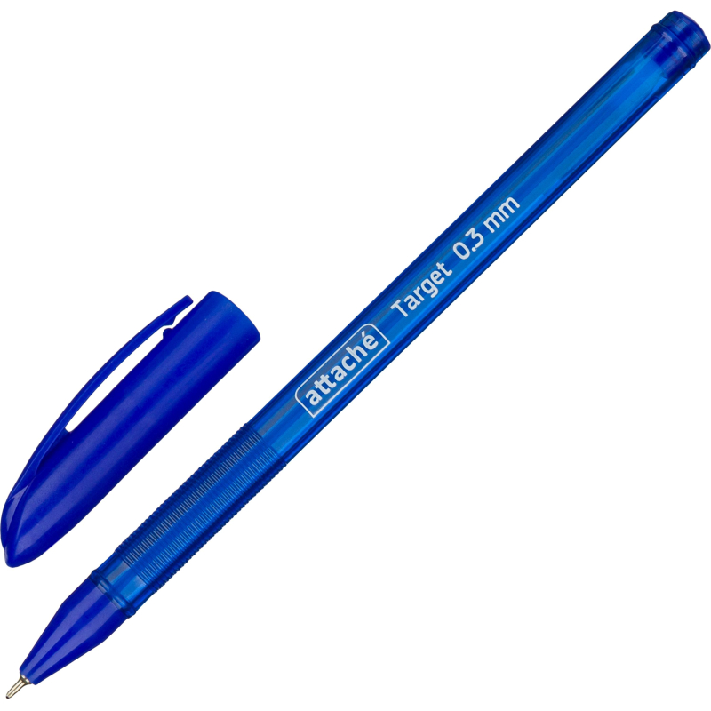 Ручка шариковая Attache Target - это яркий и запоминающийся дизайн! Модель выполнена в эргономичном пластиковом синем корпусе. Стильный дизайн ручки дополняет клип, позволяющий закрепить ручку в кармане или тетради для записей. Рифленая зона захвата способствует надежному захвату пальцев и препятствует выскальзыванию. Сменный стержень длиной 136.8 мм заправлен масляными чернилами синего цвета, снабжен игольчатым наконечником диаметром 0.5 мм, который обеспечивает сверхтонкую линию письма 0.3 мм. Ручка обеспечивает непревзойденно легкое и мягкое письмо, яркие и насыщенные линии.