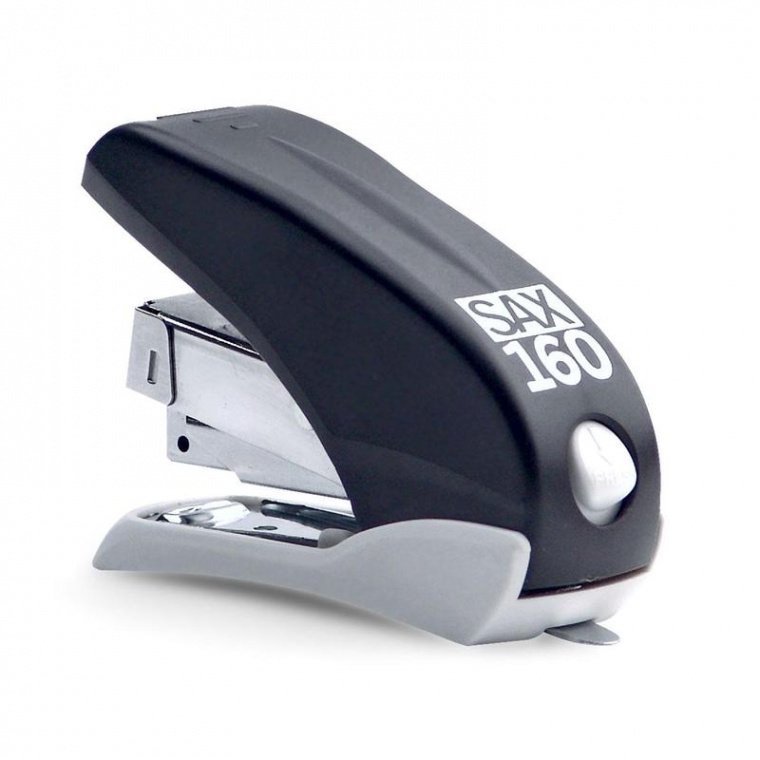 Степлер Sax 160 одновременно сшивает до 16 листов плотностью 80 г/кв.м. Позволяет производить сшивание закрытым способом. Эргономичный тип конструкции позволяет прилагать на 60% меньше усилий. Глубина закладки бумаги — 29 мм (2,9 см). Модель оснащена встроенным антистеплером. Корпус выполнен из металла и пластика, цвет черный. В степлере используются скобы № 10. Размер изделия: 85×60×30 мм.