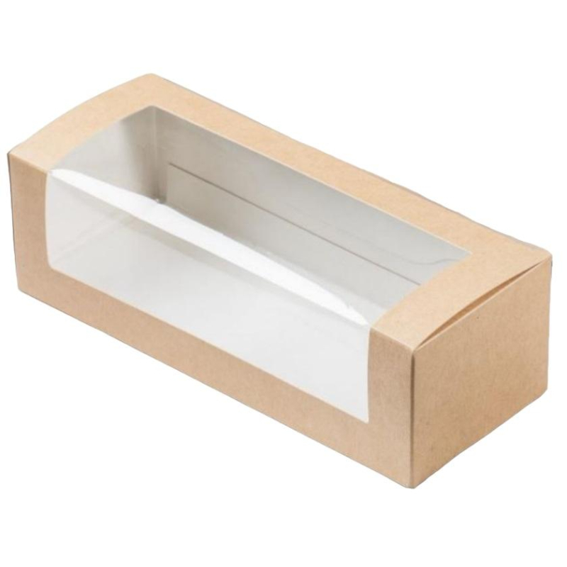 Контейнер OSQgroup Baguette box для сэндвичей коричневый (260х80х60 мм, 250 штук в упаковке). Контейнер выполнен из плотного картона полностью 325 г/кв.м. Прочная пленка плотностью 50 мкм на угловом презентационном окне. Надежный замок на контейнере защитит от незапланированного вскрытия упаковки. Внутренняя ламинация защищает от протекания продукта и прожиривания упаковки. Быстрая сборка в одно движение. Размер контейнера: 260х80х60 мм. В упаковке 250 штук.