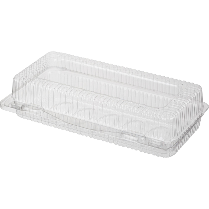 Контейнер ПФК 19/Т 213х114х56 мм 560 штук в упаковке. Контейнер с неразъемной крышкой изготовлен из прозрачного материала БОПС. Оснащен кнопочными замками для предотвращения преждевременного открытия крышки. Предназначен для фасовки, хранения и транспортировки кондитерских изделий, десертов, холодных закусок, сухофруктов и т.п. Размер: 213х114х56 мм. Объем: 900 мл. В упаковке 560 штук.