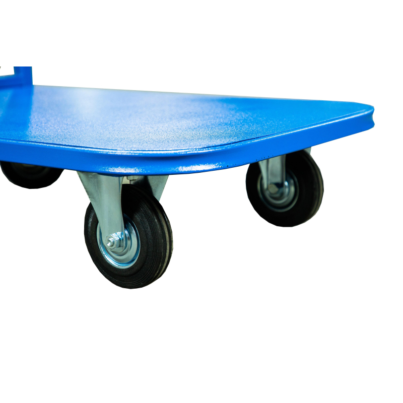 Тележка платформенная TOR ТП-1 (до 300 кг, 500х800 мм) предназначена для перевозки грузов на складах, производствах, в магазинах. Платформа изготовлена из стали толщиной 1 мм. 2 поворотных и 2 неповоротных колеса с покрышкой из литой резины диаметром 125мм в комплекте. Каркас выполнен из стальной профилированной трубы 25х25 мм с толщиной стенок 1,5 мм. Усиленные опорные площадки под колеса толщиной 2 мм. Полный набор метизов.
