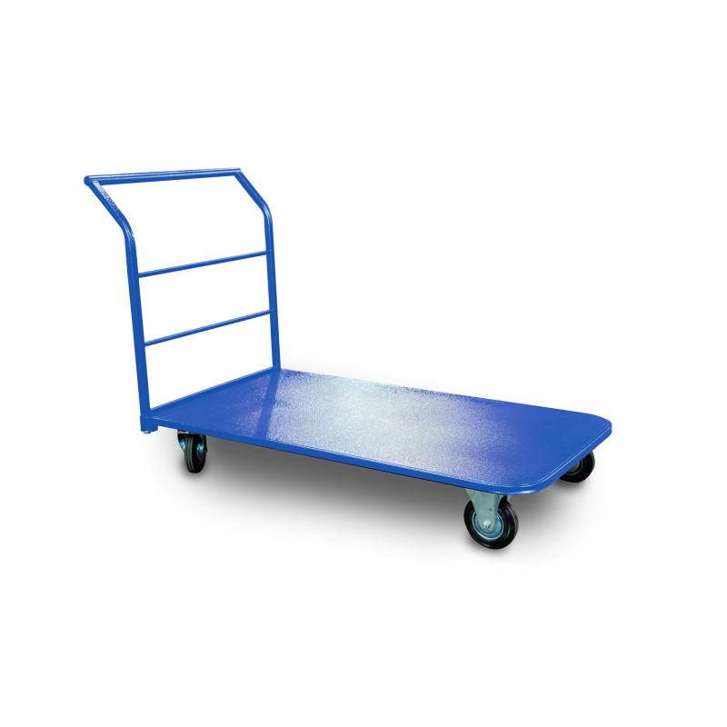 Тележка платформенная TOR ТП-4 (до 555 кг, 750х1400 мм) предназначена для перевозки грузов на складах, производствах, в магазинах. Платформа изготовлена из стали толщиной 1 мм с дополнительным усилением. 2 поворотных и 2 неповоротных колеса с покрышкой из литой резины диаметре 200 мм в комплекте. Каркас выполнен из стальной профилированной трубы 25х25 мм с толщиной стенок 1,5 мм. Усиленные опорные площадки под колеса толщиной 2 мм.