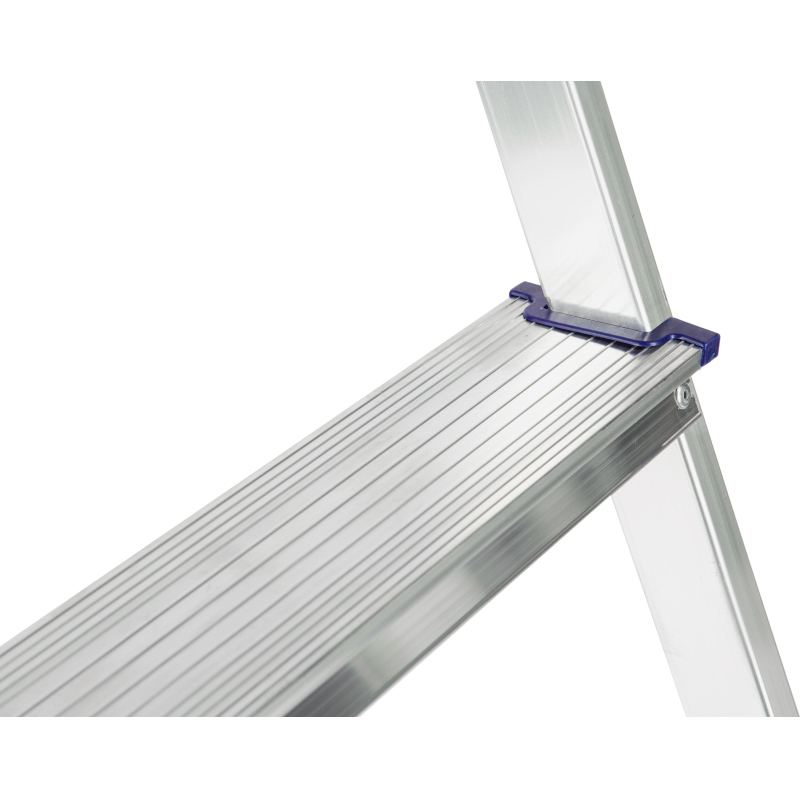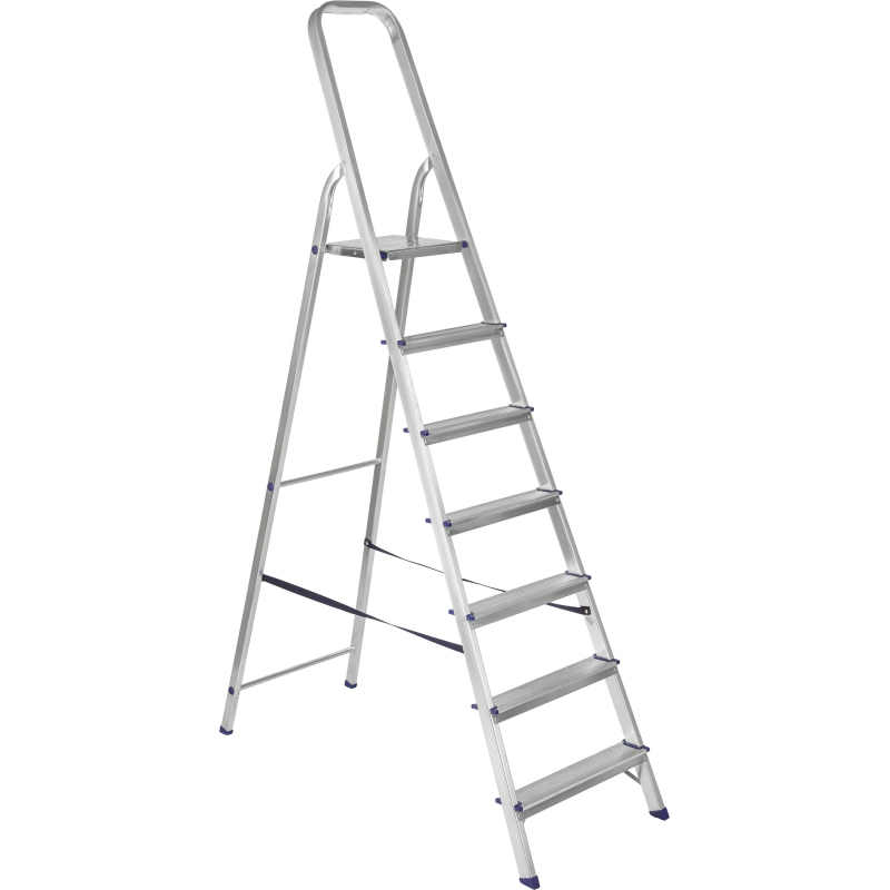 Стремянка алюминиевая 7 ступеней Topfort. Стремянка представляет собой свободностоящую переносную лестницу, сужающуюся к верху, имеющую сторону подъема (переднюю ногу), опорную сторону (заднюю ногу), рабочую площадку и раскладывающуюся для выполнения определенной задачи. Дуга безопасности конструктивно выполнена совместно со стороной подъема. Стремянка алюминиевая изготовлена из высокопрочного алюминиевого профиля. Задняя и передняя нога соединены между собой. Рабочая площадка выполнена из оцинкованной стали. Ступени имеют рифленую поверхность. Башмаки изготовлены из высокопрочного пластика. Стремянка в рабочем положении надежно фиксируется рабочей площадкой. Стремянка предназначена для проведения различных видов работ на высоте до 4 м как в быту, так и на производстве. Необходимо отметить, что производство стремянок удалась автоматизировать, что исключило влияние 'человеческого фактора' на качество продукции. При этом стремянки приобрели дополнительную прочность, возросла их надежность и долговечность.Внешний вид и/или характеристики товара могут быть изменены производителем в соответствии с производственным процессом.