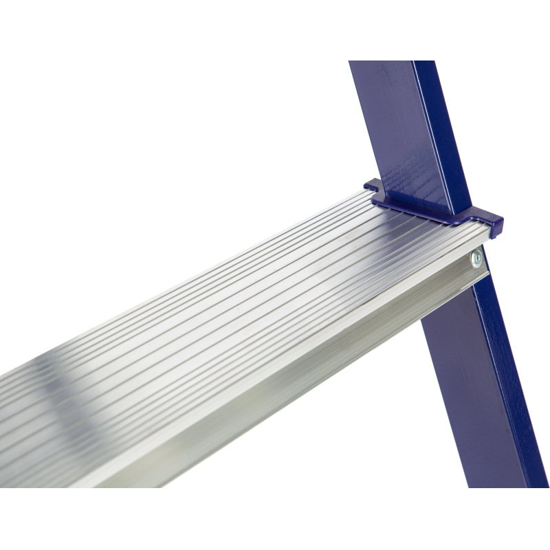 Стремянка стальная/алюминиевая 3 ступени Topfort. Стремянка представляет собой свободностоящую переносную лестницу, сужающуюся к верху, имеющую сторону подъема (переднюю ногу), опорную сторону (заднюю ногу), рабочую площадку и раскладывающуюся для выполнения определенной задачи. Дуга безопасности конструктивно выполнена совместно со стороной подъема. Тетивы стремянки стальной выполнены из прочного стального профиля, защищенного от коррозии эпоксидной порошковой эмалью. Задняя и передняя нога соединены между собой. Рабочая площадка выполнена из оцинкованной стали. Ступени имеют рифленую поверхность и изготовлены из высокопрочного алюминиевого профиля. Башмаки изготовлены из высокопрочного пластика. Стремянка в рабочем положении надежно фиксируется рабочей площадкой. Стремянка предназначена для проведения различных видов работ на высоте до 4 м как в быту, так и на производстве. Необходимо отметить, что производство стремянок удалась автоматизировать, что исключило влияние 'человеческого фактора' на качество продукции. При этом стремянки приобрели дополнительную прочность, возросла их надежность и долговечность.Внешний вид и/или характеристики товара могут быть изменены производителем в соответствии с производственным процессом.