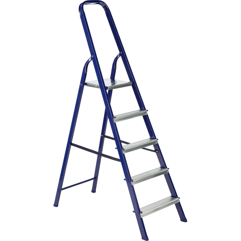 Стремянка стальная/алюминиевая 5 ступеней Topfort. Стремянка представляет собой свободностоящую переносную лестницу, сужающуюся к верху, имеющую сторону подъема (переднюю ногу), опорную сторону (заднюю ногу), рабочую площадку и раскладывающуюся для выполнения определенной задачи. Дуга безопасности конструктивно выполнена совместно со стороной подъема. Тетивы стремянки стальной выполнены из прочного стального профиля, защищенного от коррозии эпоксидной порошковой эмалью. Задняя и передняя нога соединены между собой. Рабочая площадка выполнена из оцинкованной стали. Ступени имеют рифленую поверхность и изготовлены из высокопрочного алюминиевого профиля. Башмаки изготовлены из высокопрочного пластика. Стремянка в рабочем положении надежно фиксируется рабочей площадкой. Стремянка предназначена для проведения различных видов работ на высоте до 4 м как в быту, так и на производстве. Необходимо отметить, что производство стремянок удалась автоматизировать, что исключило влияние "человеческого фактора" на качество продукции. При этом стремянки приобрели дополнительную прочность, возросла их надежность и долговечность. Внешний вид и/или характеристики товара могут быть изменены производителем в соответствии с производственным процессом.
