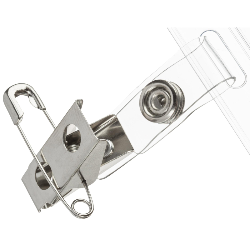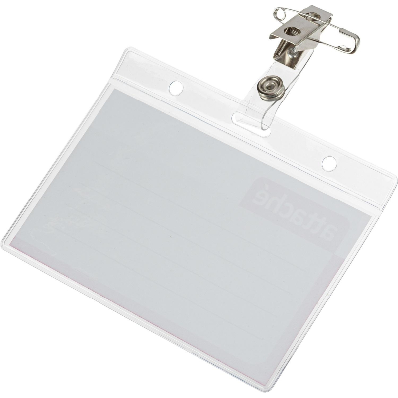 Бейдж Attache горизонтальный. Размер бейджа - 87х120 мм. Крепление изделия осуществляется при помощи металлического зажима или булавки. Подходит для именных карточек и пропусков. Размер вкладыша: 70х113 мм. Поставляется в упаковке в количестве 10 штук.