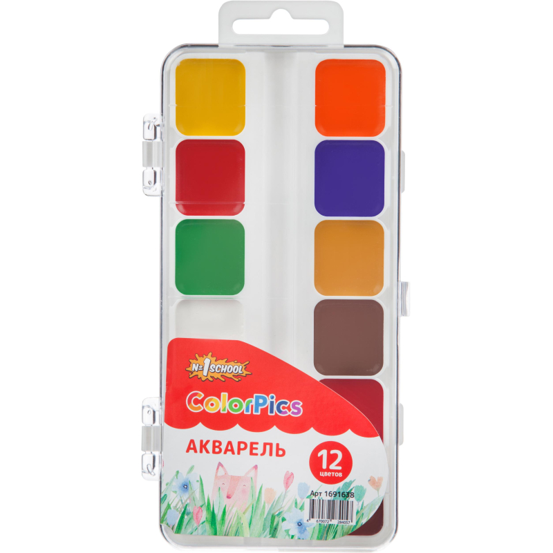 Краски акварельные №1 School ColorPics набор 12 цв б/кисти пластик