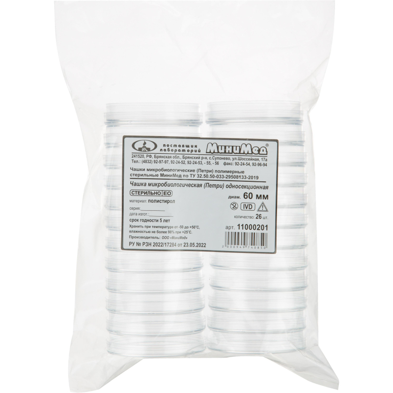 Чашка Петри 60 мм, стер., п/с, уп/26 шт Гритмед 11000201