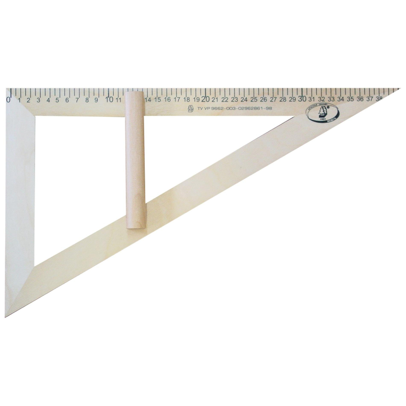 Угольник классный изготовлен из твердолиственных пород древесины. Лакированная поверхность. Незаменимый помощник учителя геометрии, алгебры, физики, имеет ручку для удобства черчения на вертикальной или наклонной школьной доске. Длина шкалы 400 мм. Угольник с прямым углом, 30°, и 60°. Выпускается с 1975 года.
