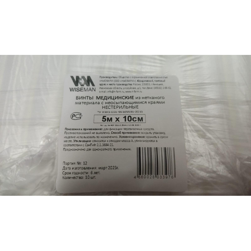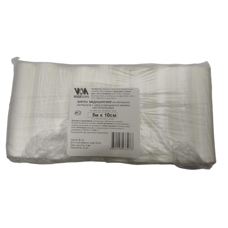 Бинт нестер. 5мх10см, пл.30г из неткан.,Wiseman,груп.уп.,10шт/уп ШК33976
