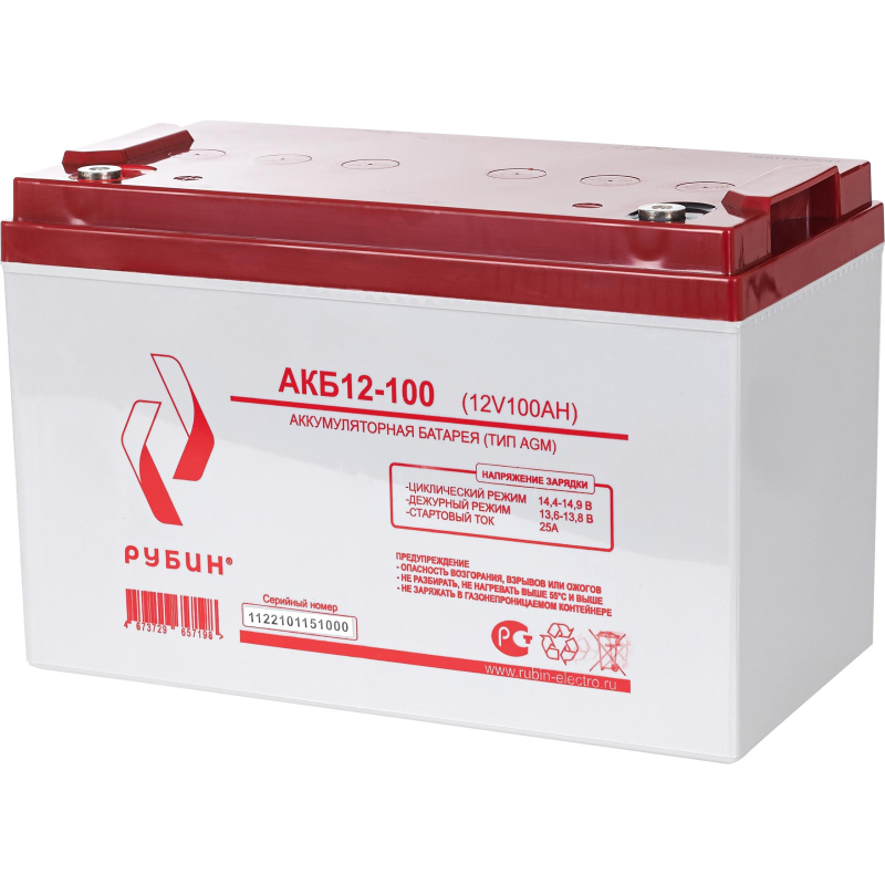 Батарея для ИБП Рубин РЭ-АКБ12100 12 В 100 Ач Внешний вид и/или характеристики товара могут быть изменены производителем в соответствии с производственным процессом.